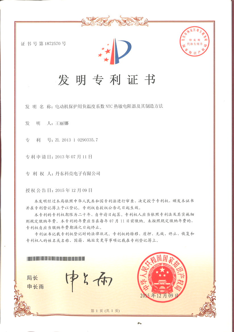 电动机保护用负温度系数NTC热敏电阻器及其制造方法